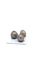 This 12.23/11.00/10.94mm , fine grade, Natural colour and luster, Bead cultured Tahitian Black Pearl Trio was harvested in French Polynesia . It features Good lustre , Lightly blemished surface , and Good nacre . Tahitian pearls are harvested from Pinctada margaritiferal oysters grown in semi-enclosed lagoons. Responsible oyster collecting and hatchery technology contribute to make the sector non-extractive. Waste and resource management are crucial to ensure quality pearls can continue to be harvested in those ecosystems and provide livelihood opportunities to communities living in often isolated areas. The sector follows strict protocols described in French Polynesia department of Fisheries code of practice, making our supplier ethical.