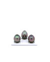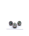 This 11.15/11.08/11.03mm , jewel grade, Natural colour and luster, Bead cultured Tahitian Black Pearl Trio was harvested in French Polynesia . It features Good lustre , Moderately blemished surface , and Good nacre . Tahitian pearls are harvested from Pinctada margaritiferal oysters grown in semi-enclosed lagoons. Responsible oyster collecting and hatchery technology contribute to make the sector non-extractive. Waste and resource management are crucial to ensure quality pearls can continue to be harvested in those ecosystems and provide livelihood opportunities to communities living in often isolated areas. The sector follows strict protocols described in French Polynesia department of Fisheries code of practice, making our supplier ethical.