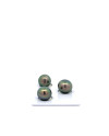 This 10.70/10.10/10.01mm , fine grade, Natural colour and luster, Bead cultured Tahitian Black Pearl Trio was harvested in French Polynesia . It features Good lustre , Lightly blemished surface , and Good nacre . Tahitian pearls are harvested from Pinctada margaritiferal oysters grown in semi-enclosed lagoons. Responsible oyster collecting and hatchery technology contribute to make the sector non-extractive. Waste and resource management are crucial to ensure quality pearls can continue to be harvested in those ecosystems and provide livelihood opportunities to communities living in often isolated areas. The sector follows strict protocols described in French Polynesia department of Fisheries code of practice, making our supplier ethical.