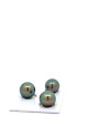 This 10.92/10.83/10.82mm , gem grade, Natural colour and luster, Bead cultured Tahitian Black Pearl Trio was harvested in French Polynesia . It features Very Good lustre , Clean surface , and Good nacre . Tahitian pearls are harvested from Pinctada margaritiferal oysters grown in semi-enclosed lagoons. Responsible oyster collecting and hatchery technology contribute to make the sector non-extractive. Waste and resource management are crucial to ensure quality pearls can continue to be harvested in those ecosystems and provide livelihood opportunities to communities living in often isolated areas. The sector follows strict protocols described in French Polynesia department of Fisheries code of practice, making our supplier ethical.