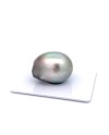 This 16.38mm , jewel grade, natural colour and luster, bead cultured Tahitian Black pearl single was harvested in French Polynesia . It features very good lustre , lightly blemished surface , and very good nacre . South Sea pearls grow in pinctada maxima, the largest pearl-bearing oysters, which is only found in a narrow corridor stretching from northern Australia to southern Japan. The Western Australia Pearling Act 1990 (Act) regulates the Australian pearling industry, which was also certified by the Marine Stewardship Council (MSC) in 2017 and recertified in 2023 to include hatchery-breed oysters, making our supplier responsible.