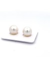 This 11.36x11.25mm , fine grade, natural colour, bead cultured South Sea pearl pair was harvested in Australia . It features very good lustre , clean surface , and excellent nacre . South Sea pearls grow in pinctada maxima, the largest pearl-bearing oysters, which is only found in a narrow corridor stretching from northern Australia to southern Japan. The Western Australia Pearling Act 1990 (Act) regulates the Australian pearling industry, which was also certified by the Marine Stewardship Council (MSC) in 2017 and recertified in 2023 to include hatchery-breed oysters, making our supplier sustainable.