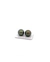 This 15.27/15.24mm , fine grade, natural colour and luster, bead cultured Tahitian Black pearl pair was harvested in French Polynesia . It features very good lustre , moderately blemished surface , and very good nacre . South Sea pearls grow in pinctada maxima, the largest pearl-bearing oysters, which is only found in a narrow corridor stretching from northern Australia to southern Japan. The Western Australia Pearling Act 1990 (Act) regulates the Australian pearling industry, which was also certified by the Marine Stewardship Council (MSC) in 2017 and recertified in 2023 to include hatchery-breed oysters, making our supplier responsible.
